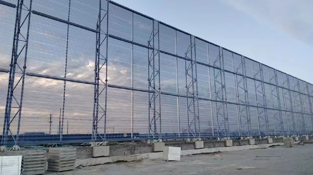 黃驊港防風抑塵網 管桁架和抑塵網完工